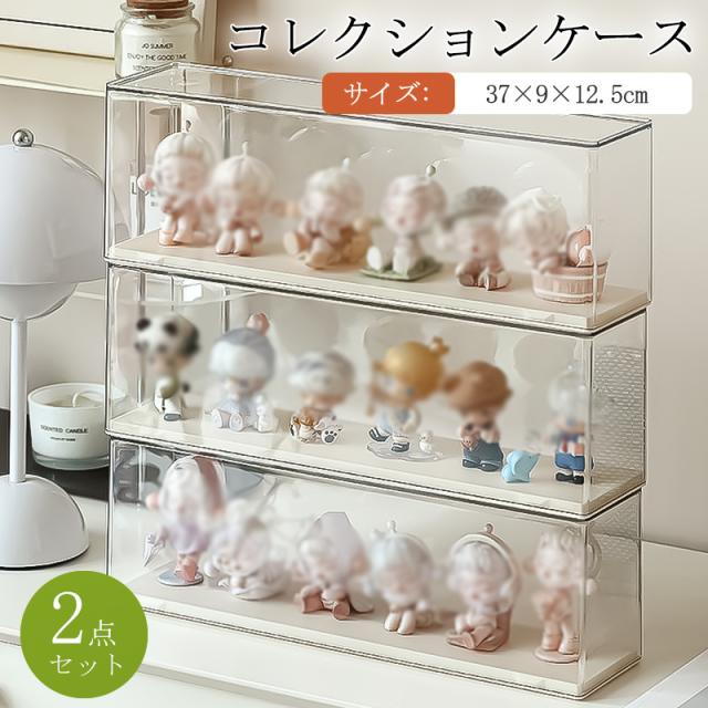 フィギュアケース コレクションケース 2点セット 積み重ね可能 クリアケース 収納ケース 卓上 組立簡単 透明 アクスタ収納 小型