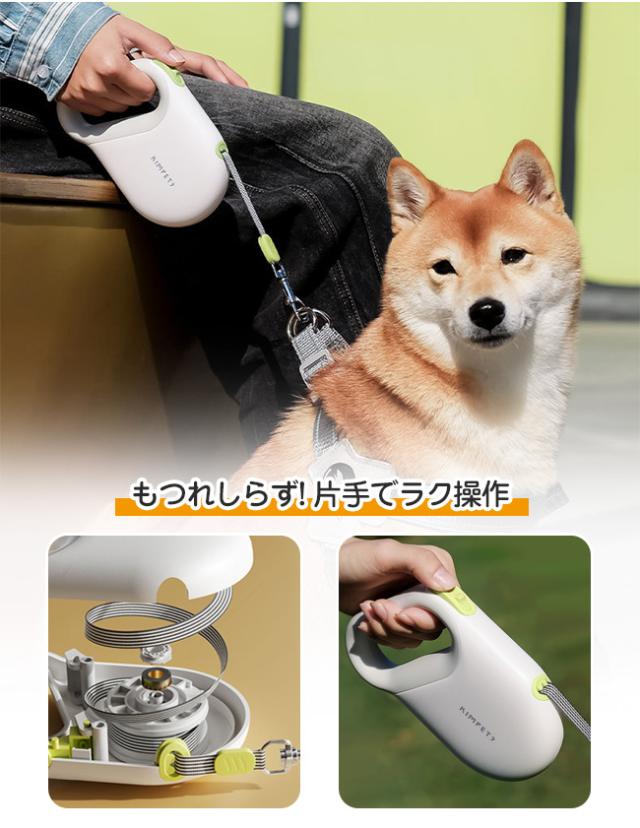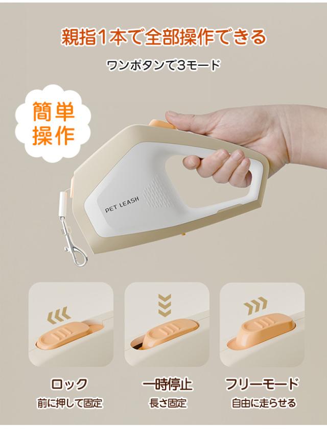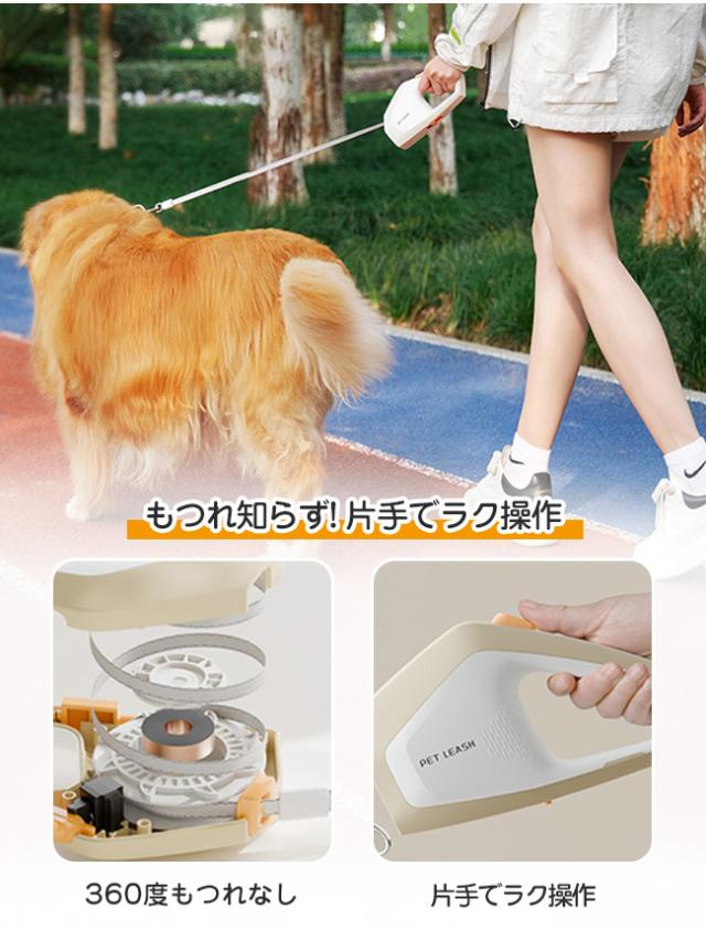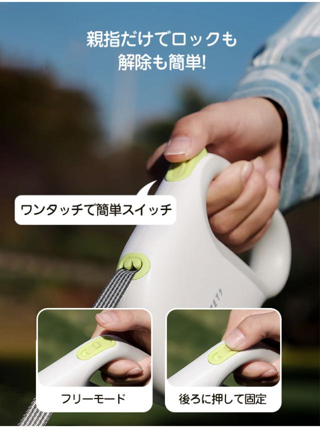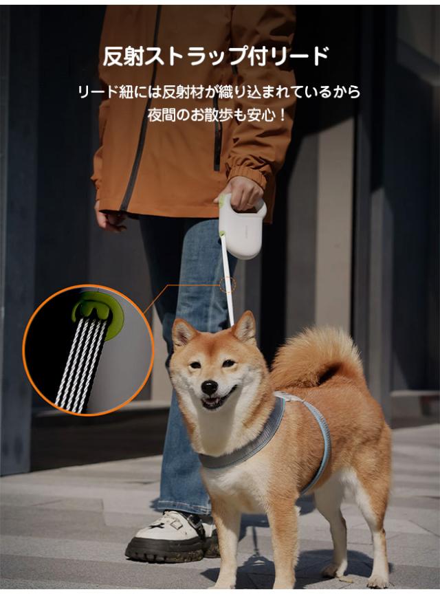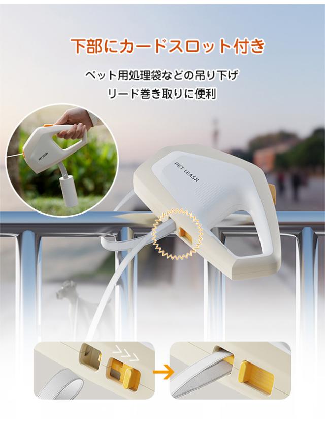 伸縮リード 5m 犬用 ワンタッチ 散歩ひも 紐 小型犬 中型犬 大型犬 自動巻き 衝撃吸収 カードスロット付 反射テープ 光る 初心者 伸びる 便利 巻き取り ロングリード 片手