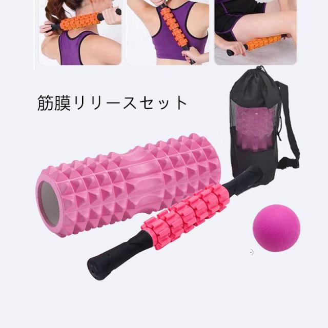 筋膜ローラー マッサージセット 3点セット 収納ケース付 ヨガポール 筋膜リリース トレーニング マッサージローラー マッサージ ボール ダイエット ハーフ ストレッチ エクササイズ リラックス 持ち運びやすい トレーニング器具 ボール 筋膜 健康