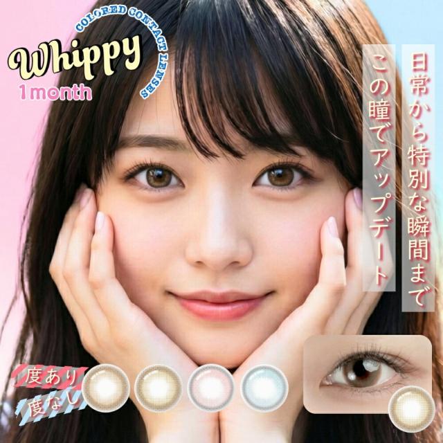 カラコン 1ヶ月 Whippy 1箱2枚/1箱 ウィッピー 1month ワンマンス マンスリー 度あり 度なし カラーコンタクト カラーコンタクトレンズ 14.2mm BC8.6 着色直径13.4mm 含水率38.5% 低含水 ナチュラル ちゅるん バレない 韓国 ブラウン ピンク ブルー