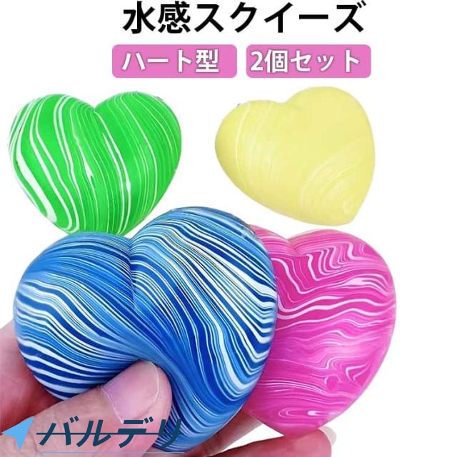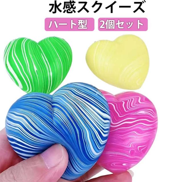 2個セット 水感スクイーズ ハート型 スクイーズ 水感 ぷにぷに プルプル 柔らか ハートスクイーズ 低反発 伸縮性 高弾力 ハート形 握る玩具 子供 大人 ストレス解消 おもちゃ グッズ 可愛い ふわとろ 袋のまま カラフル かわいい