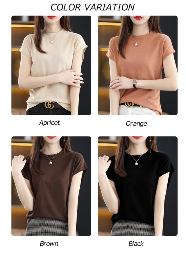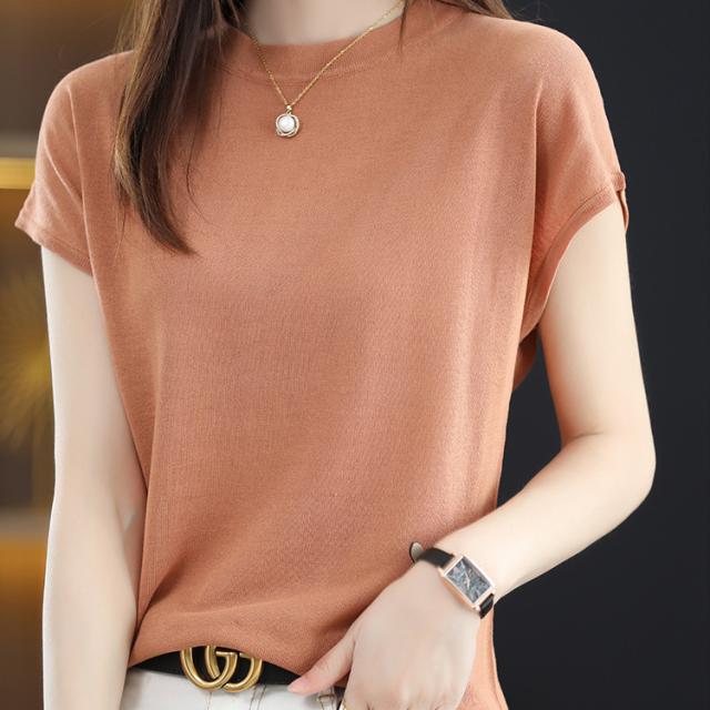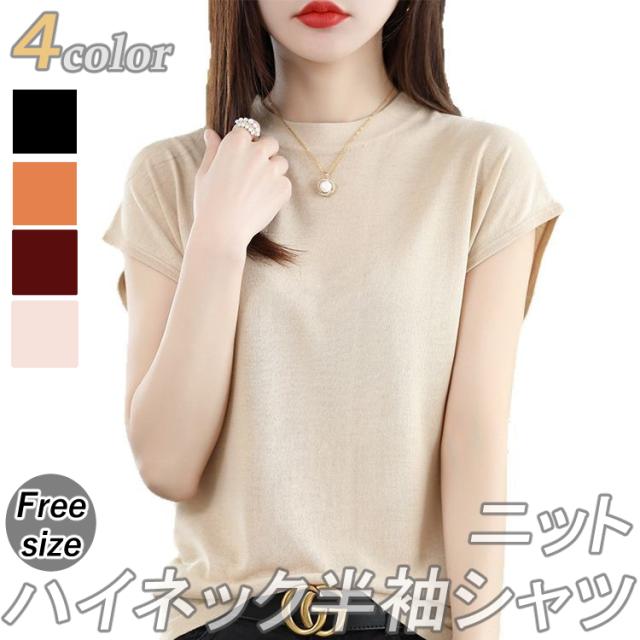 | 【商品説明】 | コーディネイトしやすいシンプルなハイネックニット半袖シャツ スカートかパンツでも合わせやすいデザイン |