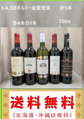 送料無料 8冠,4冠3冠含 すべて3冠以上金受賞ボルドー地区飲み比べ ワイン5本(北海道、沖縄、は有料)