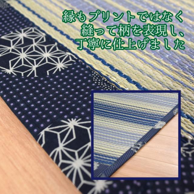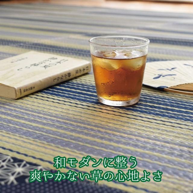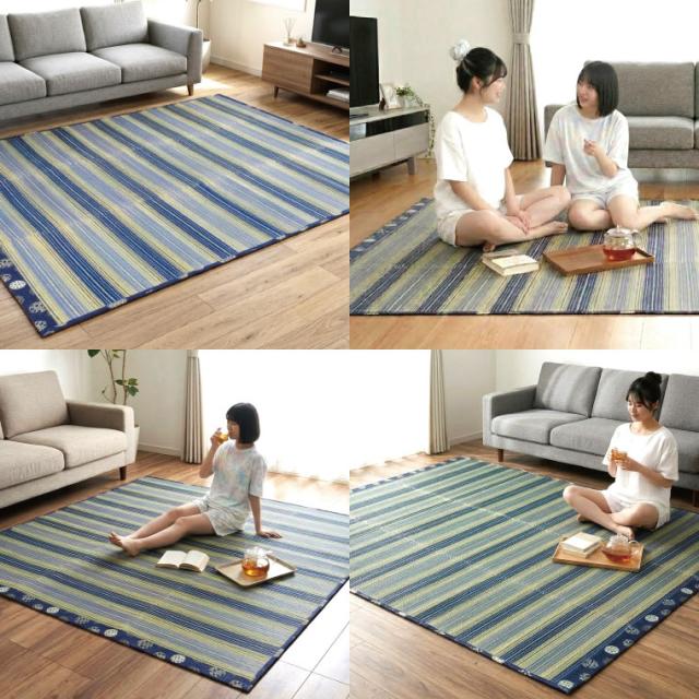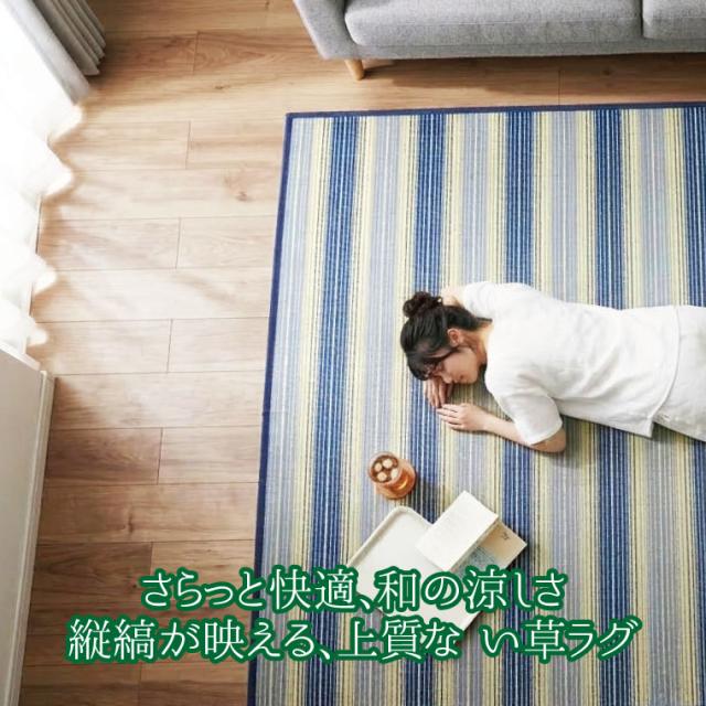 い草 ラグ 夏 上敷き 抗菌 防ダニ 天然素材 約180×230cm 縞 縦縞 涼感 センターラグ サマーラグ 和 和モダン ブルー