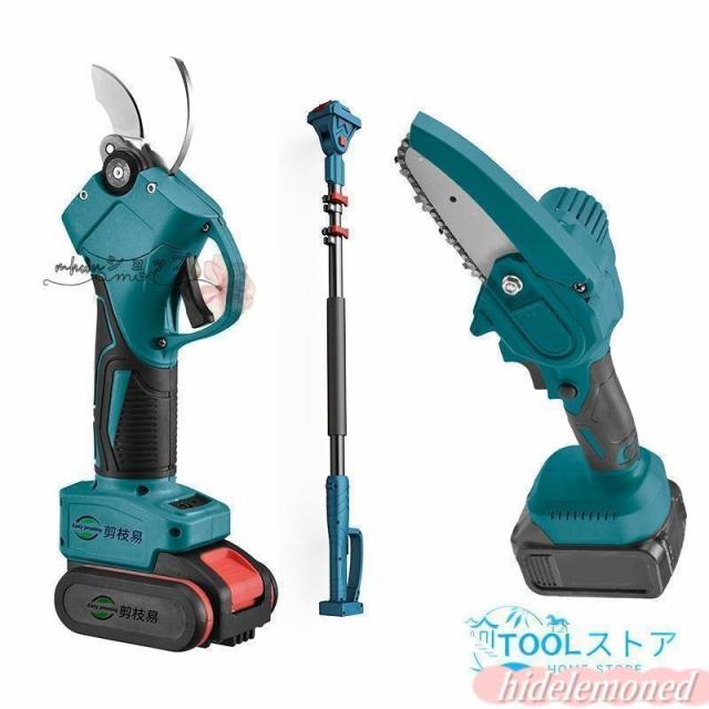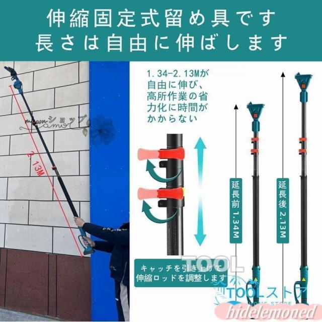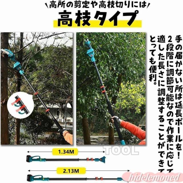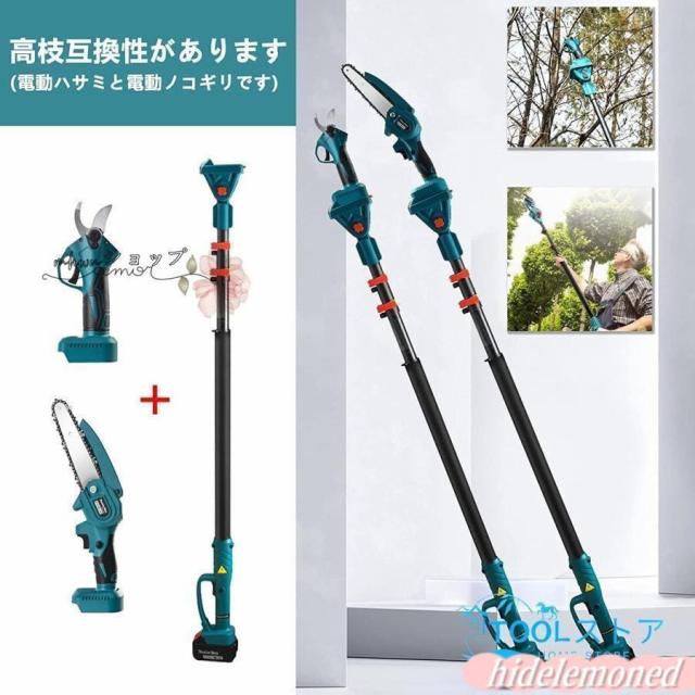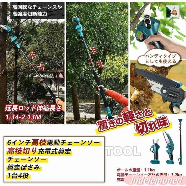 1台4役 高枝 電動のこぎり チェーンソー 充電式 高枝切り 剪定ばさみ 3 in 1 の組み合わせ 6インチ バッテリー互換 1.34m-2.13m伸縮式延長ポール