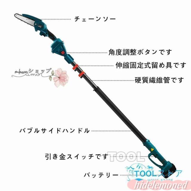 高枝 電動のこぎり チェーンソー 充電式 高枝切り 剪定ばさみ 3 in 1 の組み合わせ 6インチ バッテリー互換 1.34m-2.13m伸縮式延長ポール