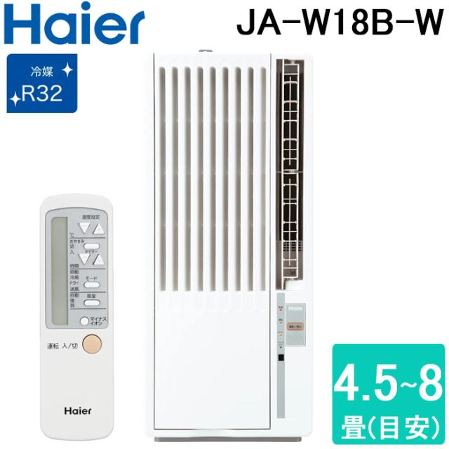 ハイアール JA-W18B-W 窓用 ルームエアコン 4.5〜8畳 冷房専用 ホワイト 液晶リモコン付 単相100V 工事不要 ウインドエアコン ノンドレン クーラー 冷房 家電 JA-W18A-Wの後継品 Haier (代引不可)