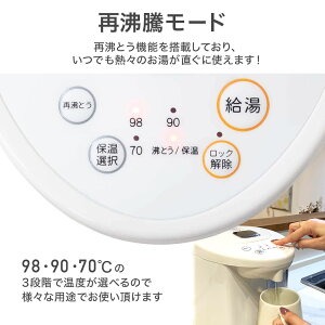 保温中のお湯を再び再沸騰させることでいつでも熱いお湯が出ます。