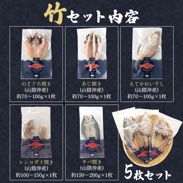 父の日ギフト グルメ 高級干物セット 竹(5種5枚セット)のどぐろ入り(70〜100g) のどぐろ エテカレイ アジの開き レンコ鯛 鯖 サバ 詰め合わせ ギフトセット 焼魚 魚 さかな ひもの 一夜干し 贈り物 贈答用 お返し 内祝い お祝い 2026年 ギフト 名産 特産品 送料無料