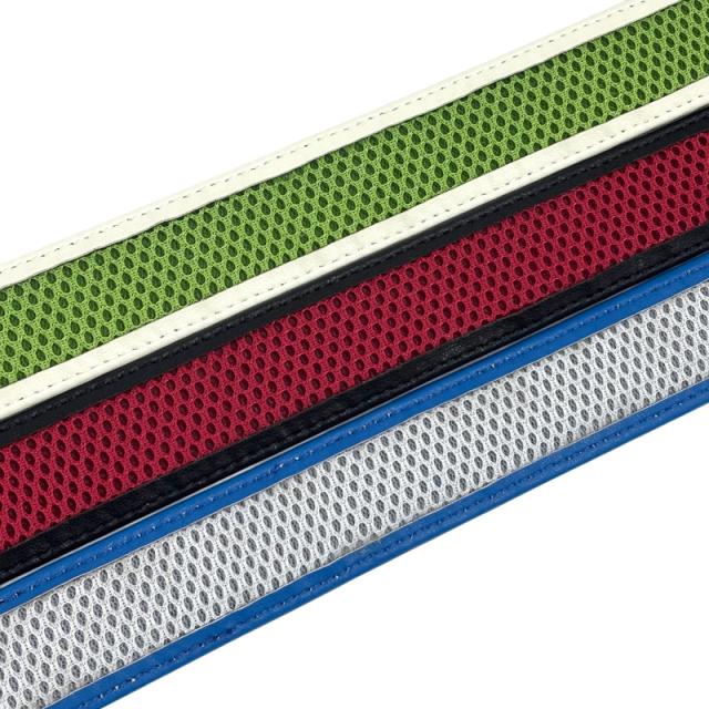 裏にメッシュ素材が使用され、通気性が良くなり長時間着用しても蒸れにくく快適な着用感のベルト