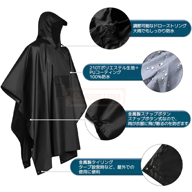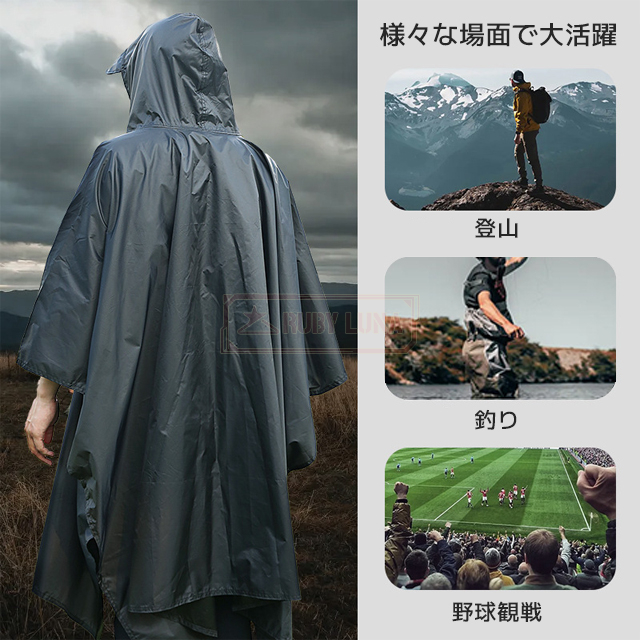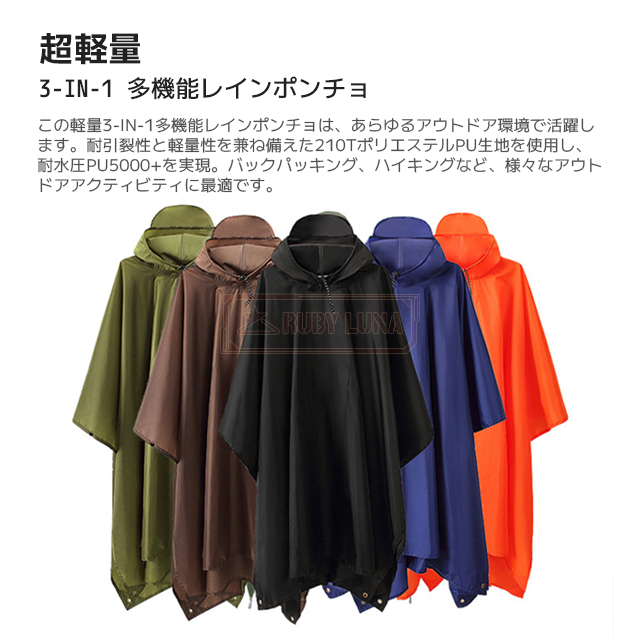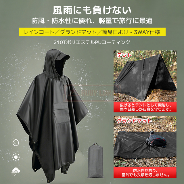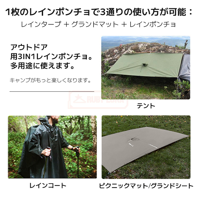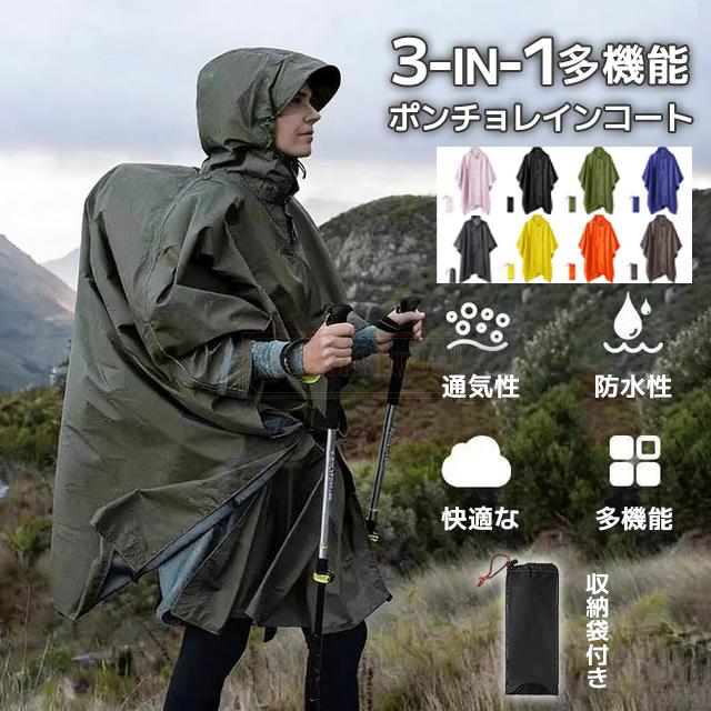 最安挑戦 春新作 送料無料 新作 レインコート 3in1 多機能 ポンチョレインコート 通気性 防水 レインウェア リュック対応 防風 撥水 梅雨対策 キャンプ用タープ 簡易テント ピクニックシート 登山 バイク アウトドア 雨よけ 雨具 防災 収納袋付き
