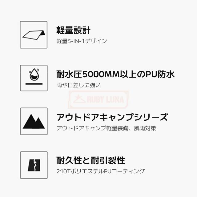 | 【幅広く適用】 | ◆通勤通学など日常使いだけでなく、キャンプ、釣り、登山、ハイキング、雨の日のイベント、野外フェス、スポーツ観戦、保育園や幼稚園の送迎などのアウトドアまで幅広くご使用いただけます。 |