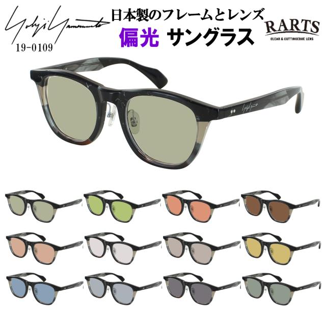 ヨウジヤマモト 日本製 偏光サングラス メンズ 度付き対応 ウェリントン アセテート クリングス鼻パッド YOHJI YAMAMOTO 19-0109 正規品 UVカット ブランド 釣り 運転用 ドライブ RARTS 偏光レンズ 日本製レンズ 乱反射防止