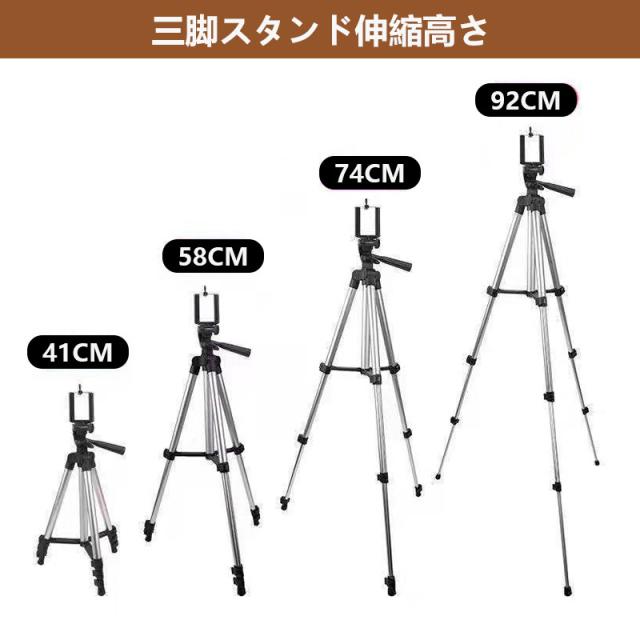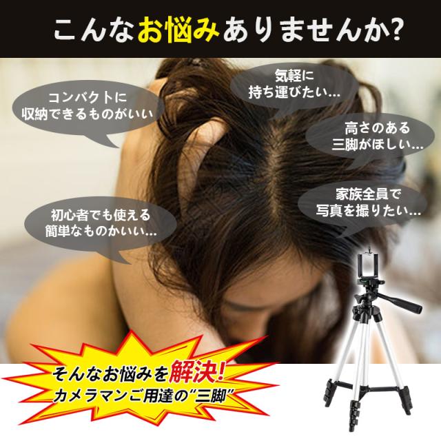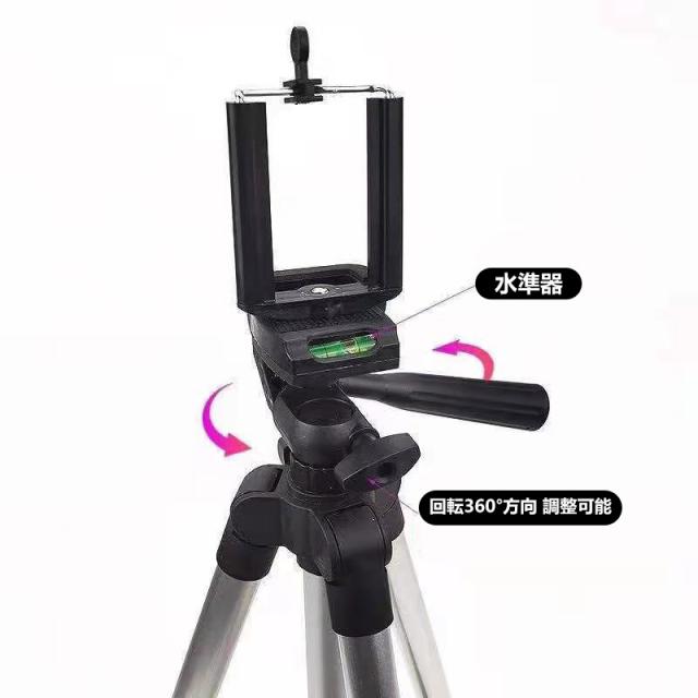 【特徴】 - スマホ固定スタンドとしても使用可能 - テレワークや動画撮影、自撮り、運動会、入学式など幅広いシーンで活躍 - アルミ製で軽量かつコンパクトに収納可能