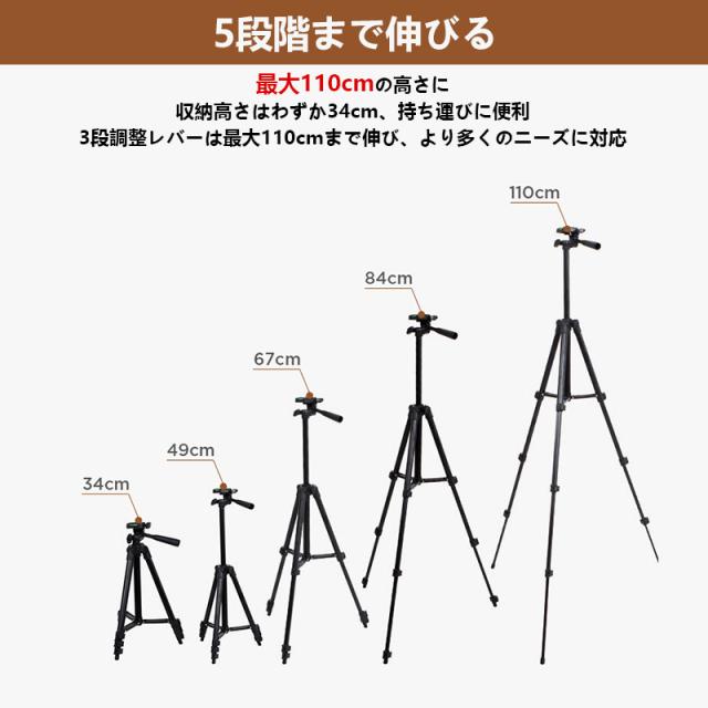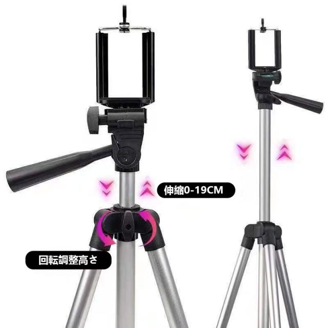 三脚 スマホ・ビデオカメラ兼用 カメラ三脚 3段階伸縮 360度回転 3WAY雲台 一眼レフ対応 自撮り 伸縮式 折りたたみ ライブ配信 生放送用