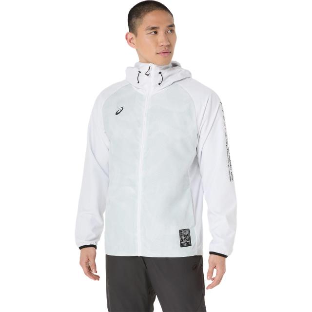 asics (アシックス) マルチ・カジュアル ウインドウェア 裏トリコットグラフィックウインドブレーカーフーディー 【ブリリアントホワイトイト】 2031F174 100 ジャケット ウェア メンズ 男性用 ホワイト 白 25AW {SK}