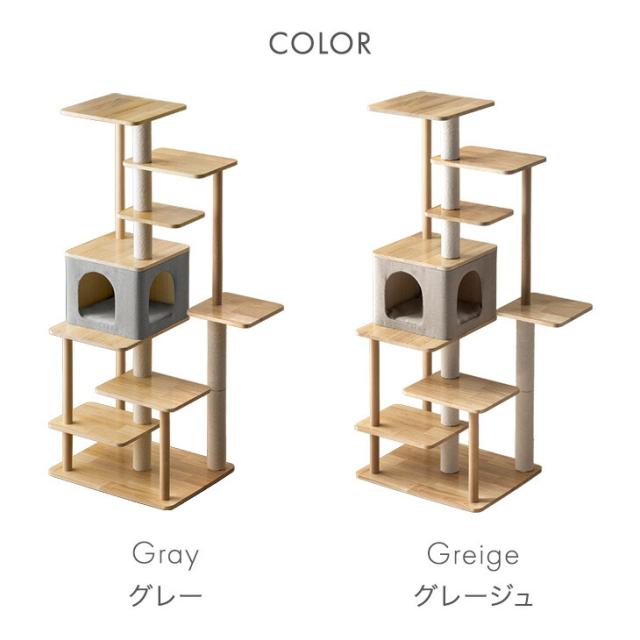 天然木 キャットタワー 147cm 据え置き 猫タワー キャット タワー 置き型 爪研ぎ 爪研ぎ綿紐 ねこ 猫 大型猫用 つめとぎ 多頭 シンプル かわいい インテリア 北欧 グレー べージュ【商品番号:92700006】