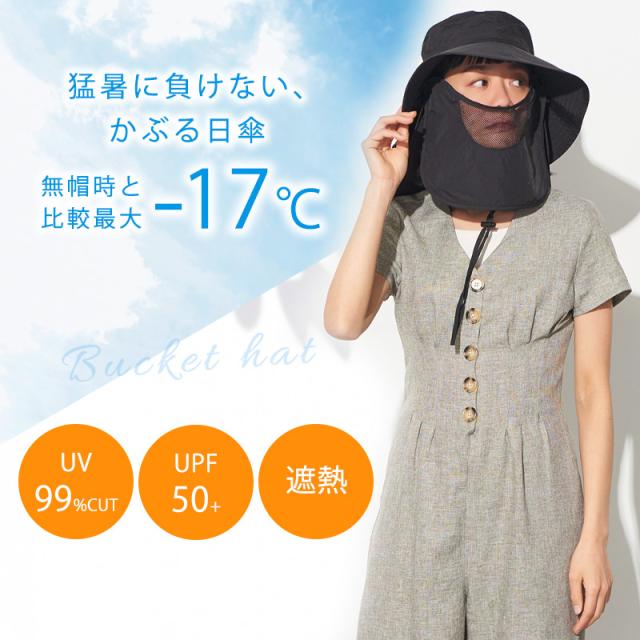 かぶるだけで暑さ対策。マスクとネックカバーが一体になった、紫外線対策に最適なバケットハット。