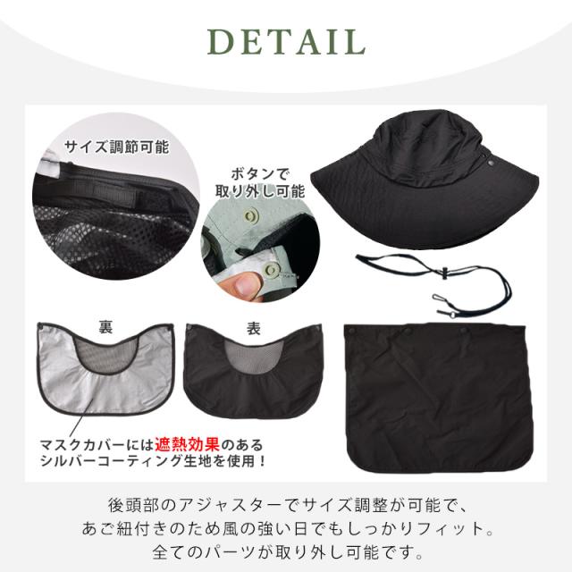 ●仕様・機能:帽子、ぼうし、UVハット、ハット、バケットハット、バケハ、サファリハット、アドベンチャーハット、つば広ハット、つば広帽子、フェイスカバー、フェイスマスク、マスク付き帽子、ネックガード、ネックカバー、垂れ付き、タレ付、垂れあり、日よけ帽子、日除け帽子、レディース、ミセス、女子、女性、婦人、ママ、母、母親、お母さん、祖母、おばあちゃん、大人、20代、30代、40代、50代、60代、70代、80代、シニア、年配、高齢者、お年寄り、春、春用、春物、夏、サマー、夏用、夏物、真夏、春夏、春夏物、春夏用、夏の帽子、暑い季節、秋、uv、UVケア、UV対策、UVカット、紫外線カット、遮熱、シルバーコーティング、冷感、ひんやり、涼しい、蒸れない、内側メッシュ、通気性、抗菌防臭、汗止めテープ、撥水、あご紐付き、紐付き、ひもつき、パッカブル仕様、パッカブル、折りたたみ、折り畳める、持ち運び便利、コンパクト、手洗い洗濯OK、手洗い可能、洗える、清潔