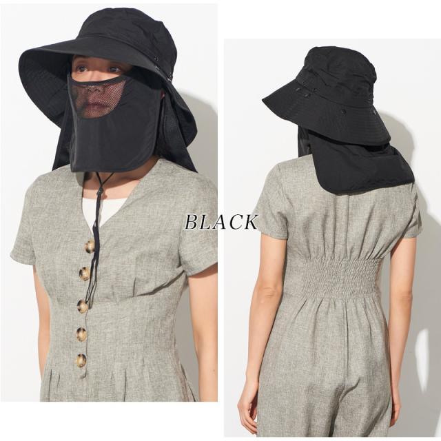 【2026年春夏新作】 レディース 春 夏 春夏 夏用 帽子 つば広帽子 つば広ハット 日よけ帽子 日除け帽子 紫外線対策 日焼け防止 遮熱 冷感 抗菌防臭 撥水 手洗い洗濯可能 抗菌防臭 折り畳める 垂れ付き |SEMI マスク&ネックカバー&あご紐付き UVカット バケットハット ht-sem