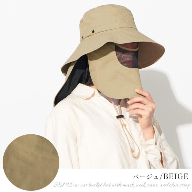 ht-sem | SEMI マスク&ネックカバー&あご紐付き UVカット バケットハット