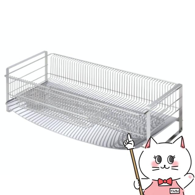 サイズ : 幅26×奥行59.4×高さ18cm(箸置き含まず)、バスケット内寸:幅21×奥行56×深さ9.8cm、トレー:幅23.7×奥行56.5×高さ5cm、箸置き:幅30×奥行11×高さ7cm(内寸:幅29×奥行7×深さ4.7cm)、脚部内寸:奥行57cm、脚部幅:20.5cm(トレー含まず)、ワイヤー間0.8cm、排水面床接地幅(約)15cm