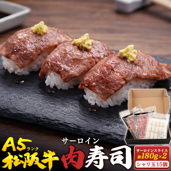肉 ギフト 松阪牛 A5 肉寿司 15貫分 サーロイン スライス 180g×2パック シャリ玉15個 肉巻き 肉すしセット 材料 食材 国産 牛肉 冷凍配送 ブランド牛 高級肉 鉄板焼き 豪華 黒毛和牛 グルメ 食品 松坂牛 内祝 誕生日 イベント 記念日 お花見 ゴルフ コンペ 景品 長寿祝