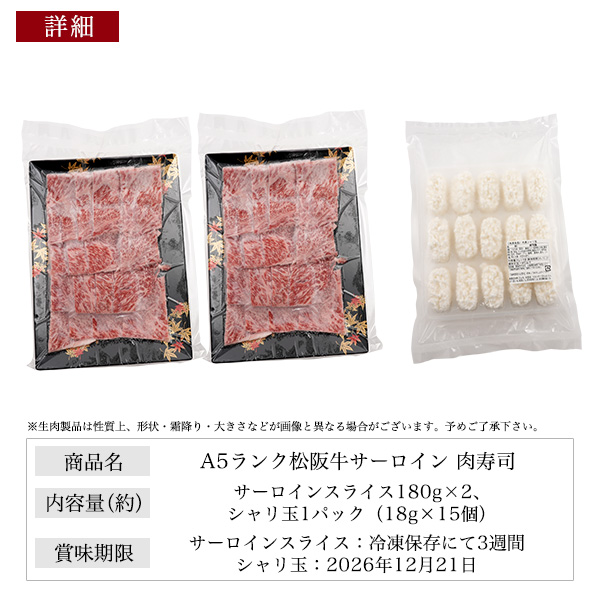 A5ランク松阪牛サーロイン 肉寿司 約180g×2+シャリ玉15個