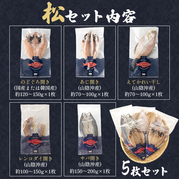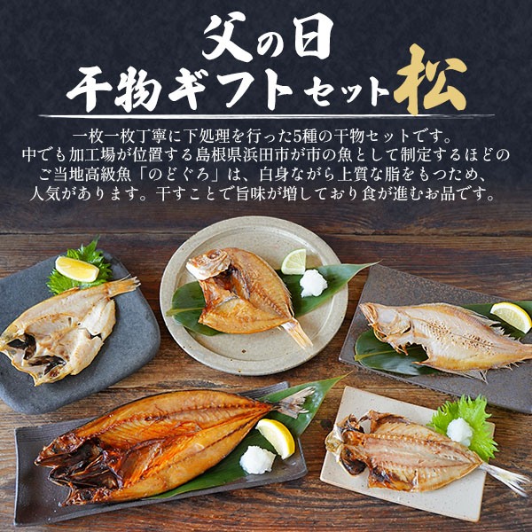 父の日ギフト グルメ 高級干物セット 松(5種5枚セット)のどぐろ入り(120〜150g) のどぐろ エテカレイ アジの開き レンコ鯛 鯖 サバ 詰め合わせ ギフトセット 焼魚 魚 さかな ひもの 一夜干し 贈り物 贈答用 お返し 内祝い お祝い 2026年 ギフト 名産 特産品 送料無料