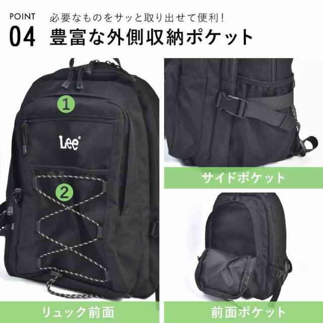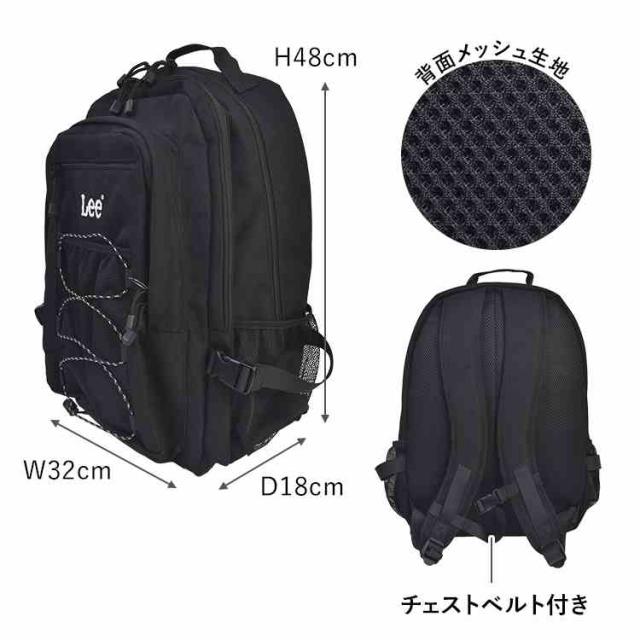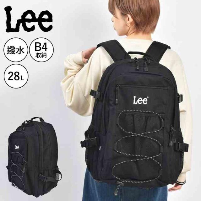 Lee リュック 大容量 28L 撥水 メンズ レディース 通学 高校生 中学生 バックパック リュックサック B4 A4対応 PC収納 タブレット対応 2ルーム 多収納 おしゃれ ブランド 黒 ブラック シンプル チェストベルト サイドベルト 背面メッシュ 学生 通勤 部活 旅行 リー 女子 男子