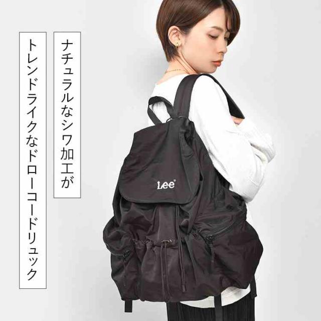 Lee リュック レディース ママ 大容量 軽量 フラップリュック A4対応 通学 通勤 マザーズバッグ おしゃれ 軽い ブランド バックパック 巾着リュック ドローコード メンズ 学生 大学生 ユニセックス 多収納 ナイロン 黒 ブラック シンプル 無地 カジュアル アウトドア リー