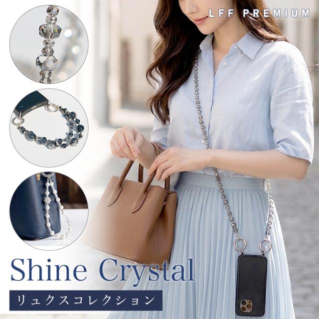光をまとったように輝くシャインクリスタル。シンプルなのに華やかで、スマホはもちろん鍵やバッグ、ポーチにもなじみ、日常にきらめきと私らしさを添えるストラップ。
