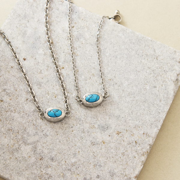 ブレスレット アンクレット つけっぱなし ステンレス サージカルステンレス 医療用ステンレス 316L 金属アレルギー アレルギーフリー ターコイズ トルコ石 オーバル プレート ハワイアンジュエリー ハワイ ハワイアン 刻印 名入れ シルバー メンズ レディース きれいめ 上品