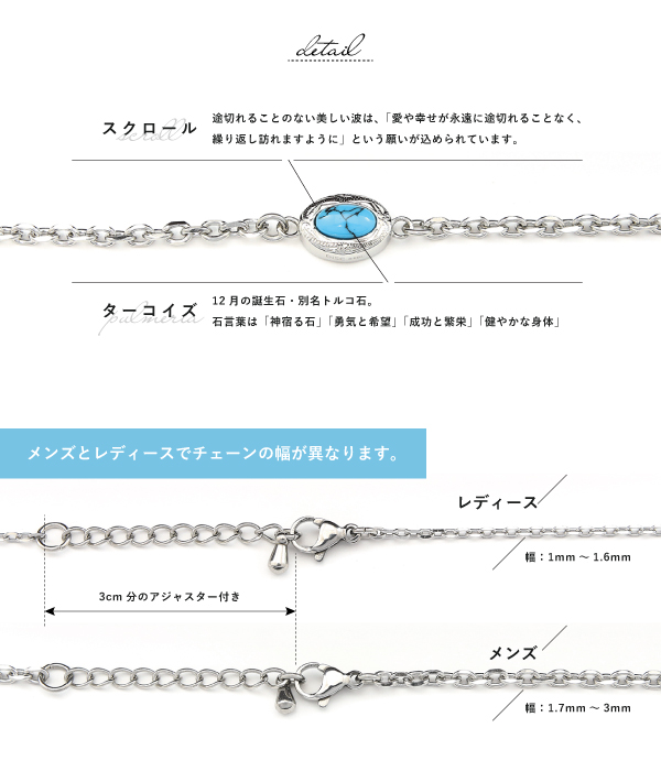 [ブレスレット長さ]メンズ:18cm+アジャスター3cm / レディース:15.5cm+アジャスター3cm