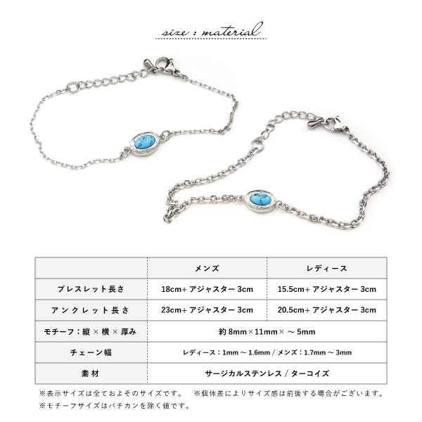 [アンクレット長さ]メンズ:23cm+アジャスター3cm / レディース:20.5cm+アジャスター3cm