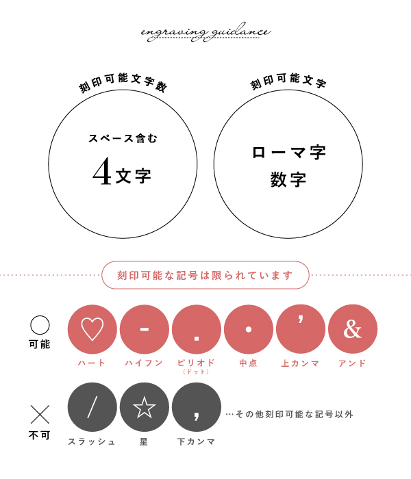 ■文字の組み合わせ等によっては、4文字刻印ができない場合もございます。
