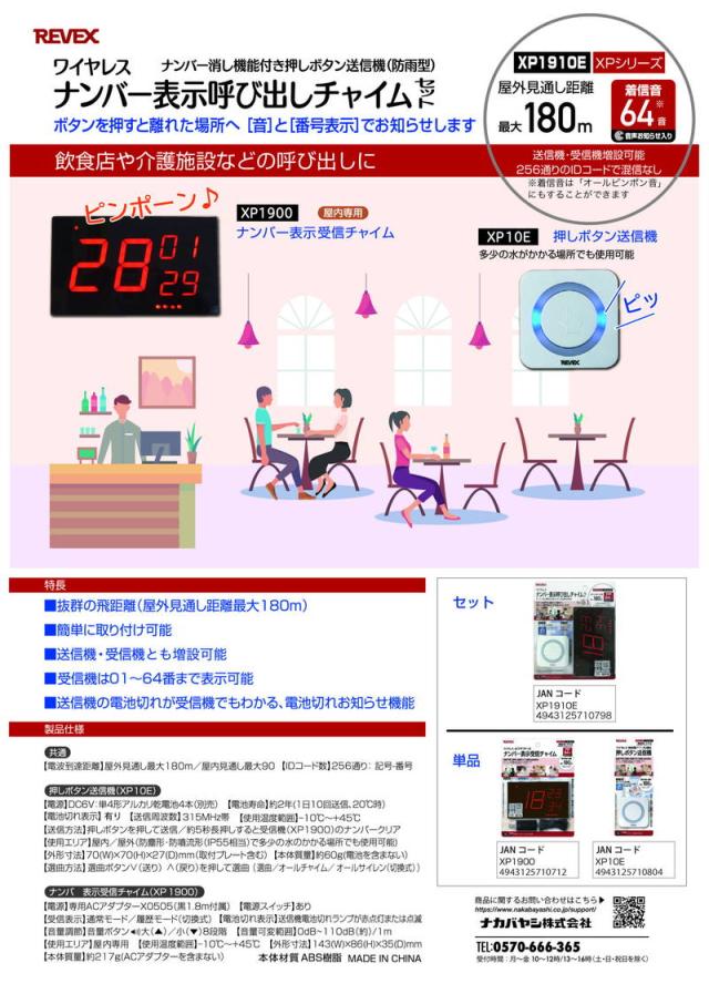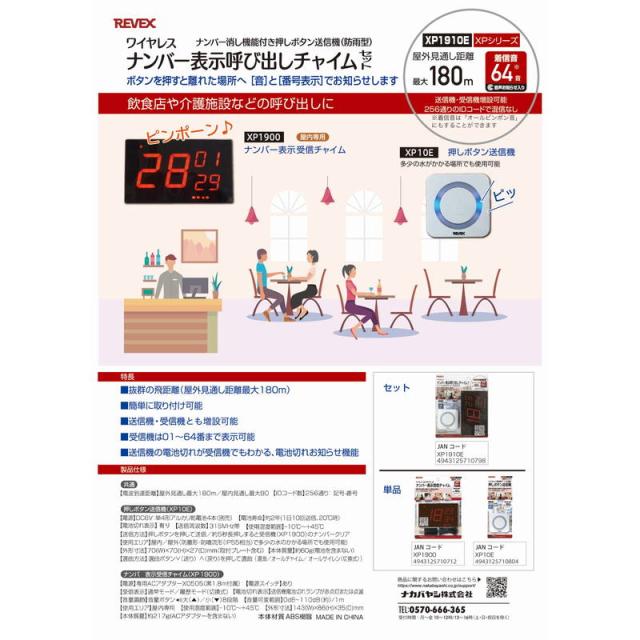 ●レストランや病院、介護施設などの呼び出しに。ワイヤレスナンバー表示呼び出しチャイム