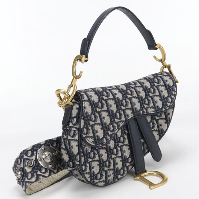 中古美品DIOR ディオール ショルダーバッグ ミニ サドル レディース ネイビー