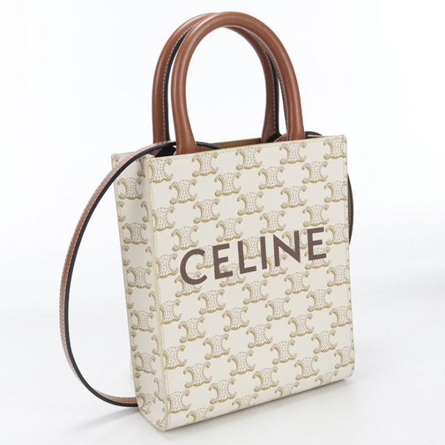 中古良品CELINE セリーヌ ハンドバッグ 19437 2BZK ミニ バーティカル カバ トリオンフキャンバス レディース ホワイト