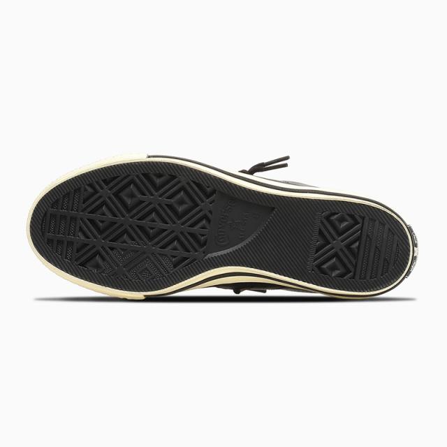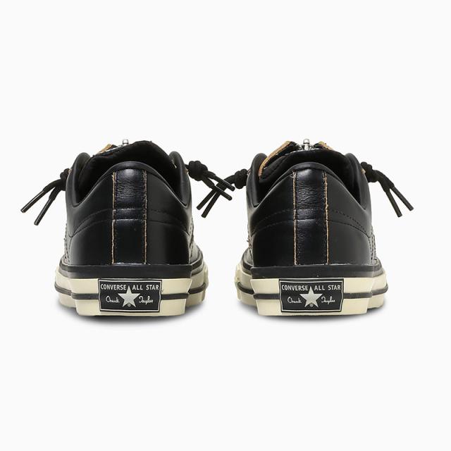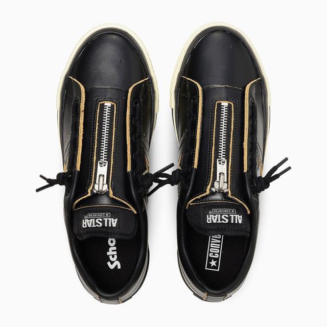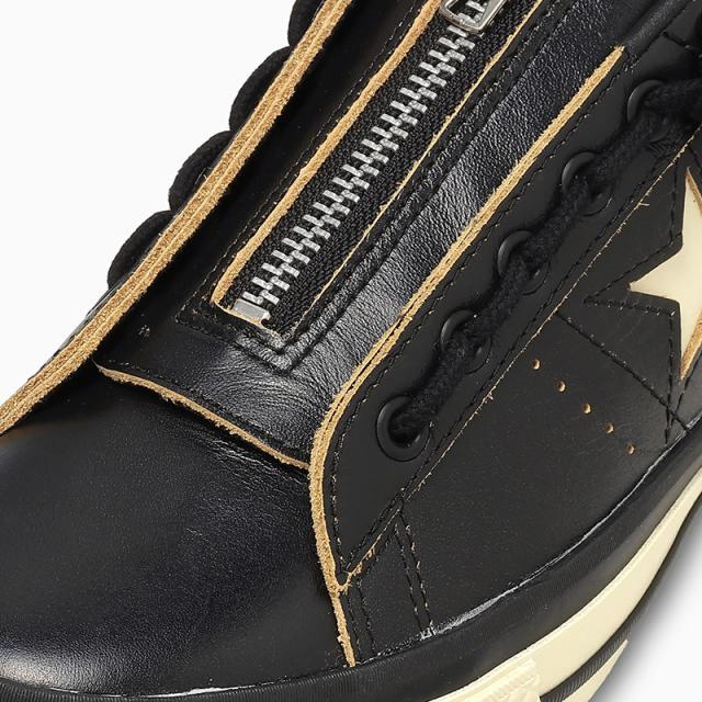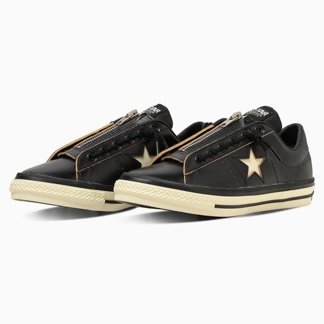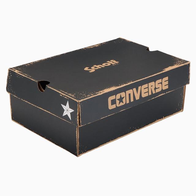Schottのライダースジャケットを象徴するディテールと、CONVERSEの名作ワンスターが融合。生成りテープやセンタージップ仕様など、無骨で存在感のあるデザインが特徴です。