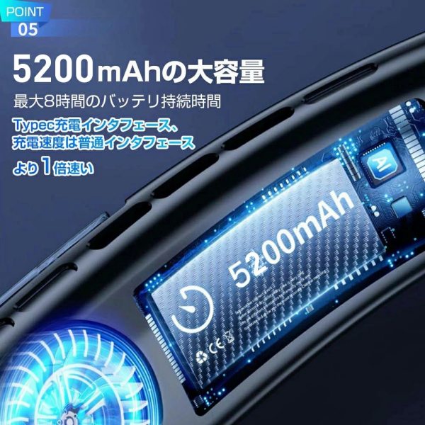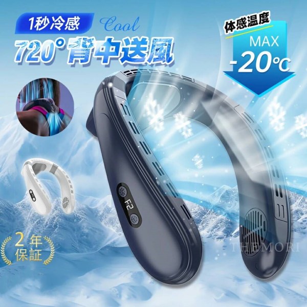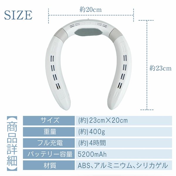 ネッククーラー 背中送風 冷却プレート 首掛け 羽なし 扇風機 ネックファン 半導体冷却 3段調節 1秒で冷やす 接触冷感 5200mAh 大容量 静音 軽量 LED付き 暑さ対策グッズ/熱中症対策/屋外