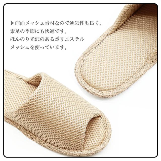 こちらの商品はつま先部分が開いている、いわゆる「前空き」スリッパです。