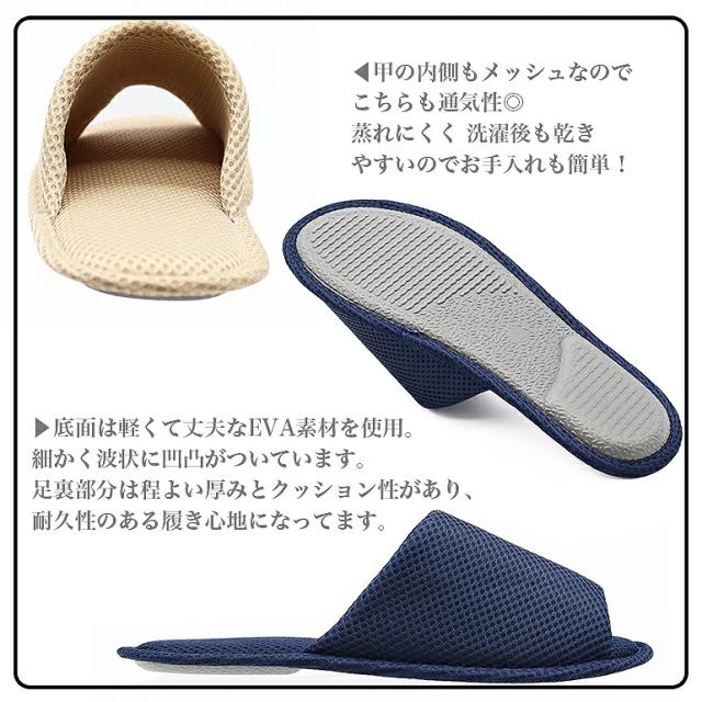 長時間履いても蒸れにくく、さらっと快適な履き心地を保ちますので夏にはかかせないスリッパです。