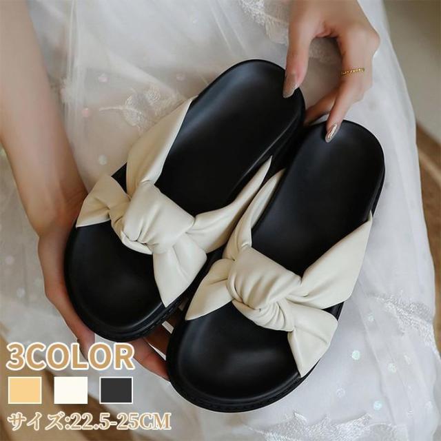 サンダル 靴 レディース シューズ スリッパ リボン 履きやすい おしゃれ シンプル 夏 無地 カジュアル ビーチ 海 20代 30代 40代 50代