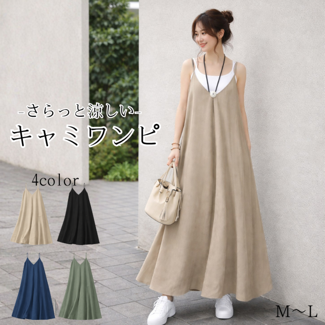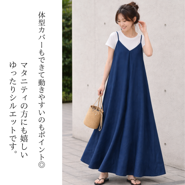 キャミワンピ キャミソール ワンピース オールインワン マタニティ ママ 妊婦 レディース ロングワンピース 体型カバー 薄手 涼しい 春服 夏服 ノースリーブ 着やせ Vネック 30代 40代 50代