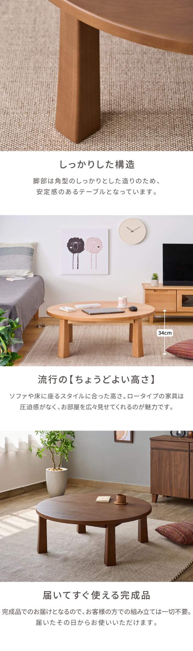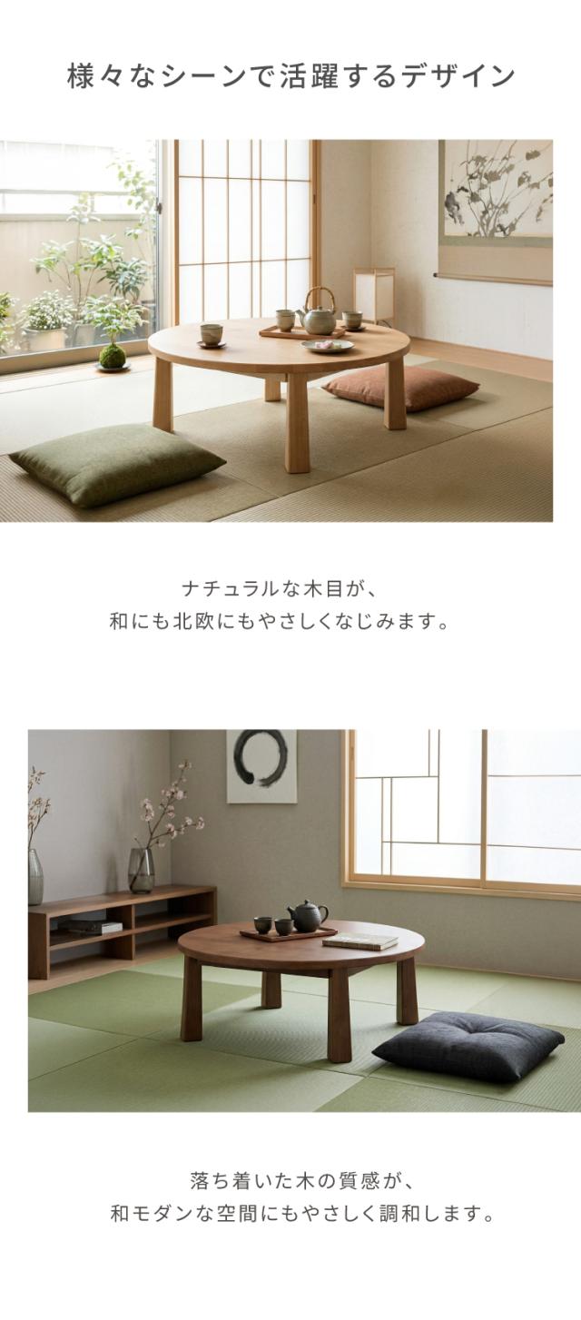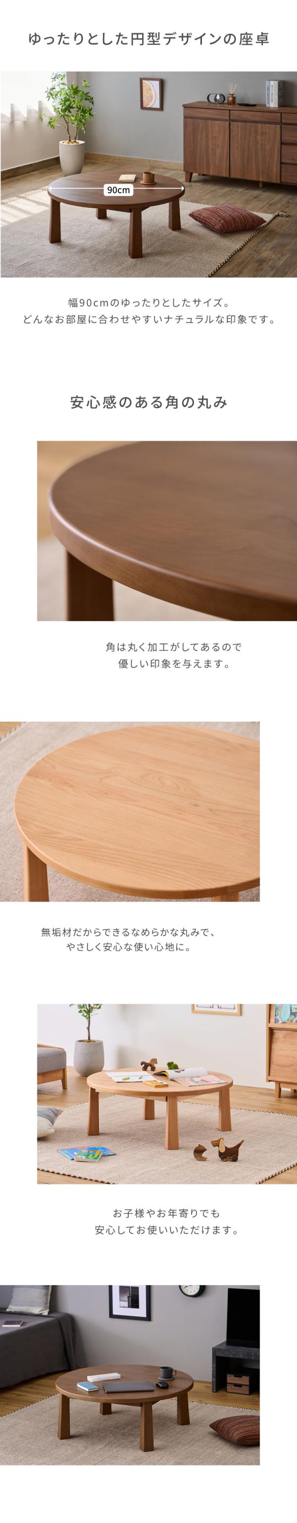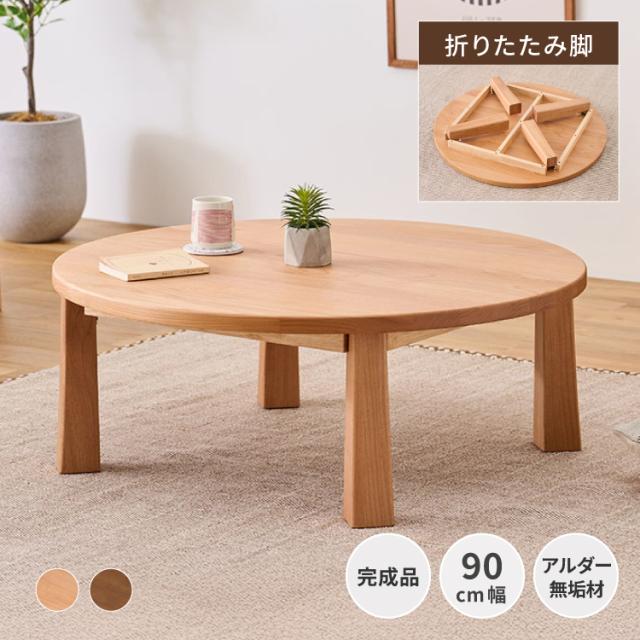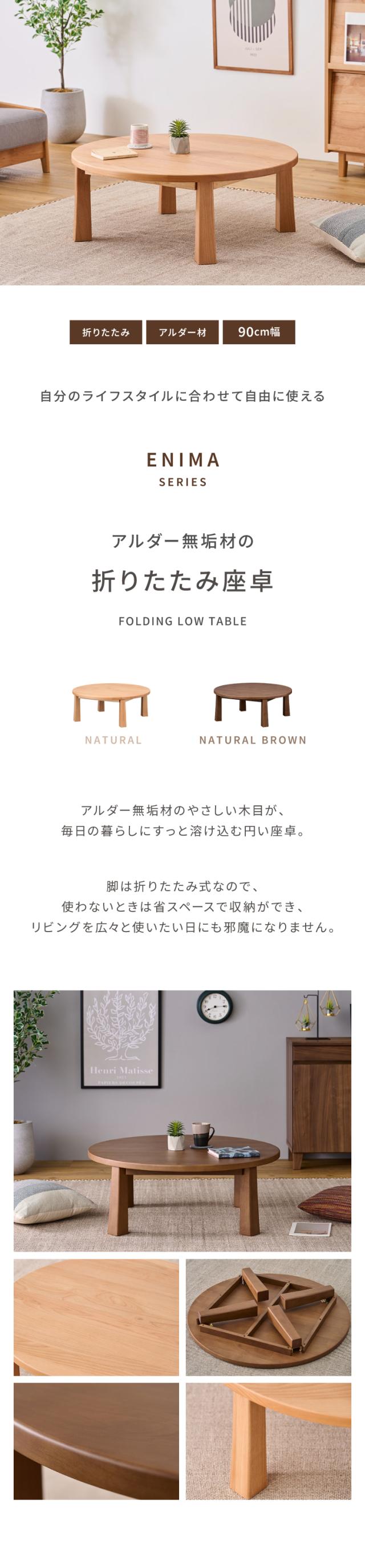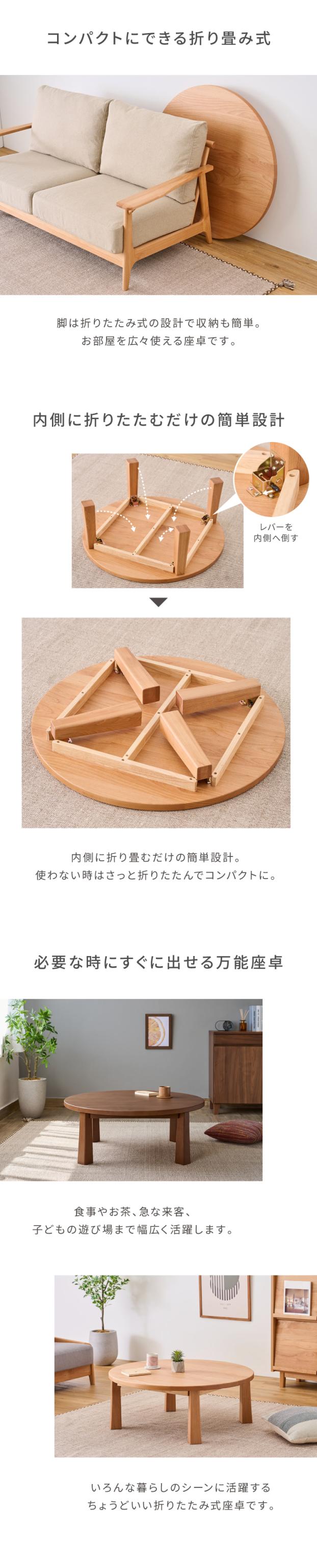 座卓 丸型 90cm ローテーブル 木製 ナチュラル 完成品 折り畳み 収納可能 軽量 リビングテーブル 北欧風 おしゃれ 角丸 ファミリー向け 来客用 コンパクト ENIMA ISSEIKI