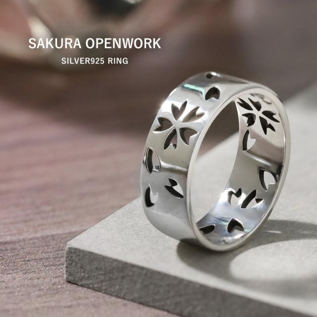 指輪 メンズ リング シルバー925 シルバーリング 桜 サクラ さくら 和柄 和風 花 透かし 彫り 平打ち ワイドリング 幅広 メンズアクセサリー レディース ユニセックス ペアアクセサリー カジュアル きれいめ おしゃれ 人気 プレゼント ギフト 9号 11号 13号 15号 17号 19号 21号 23号