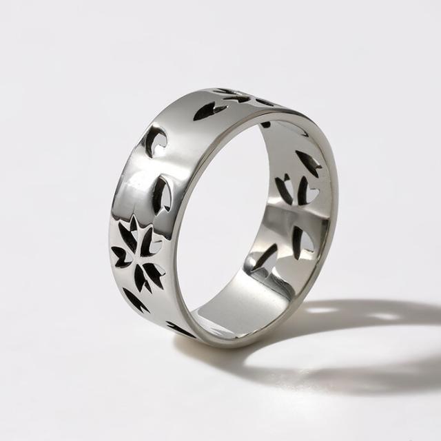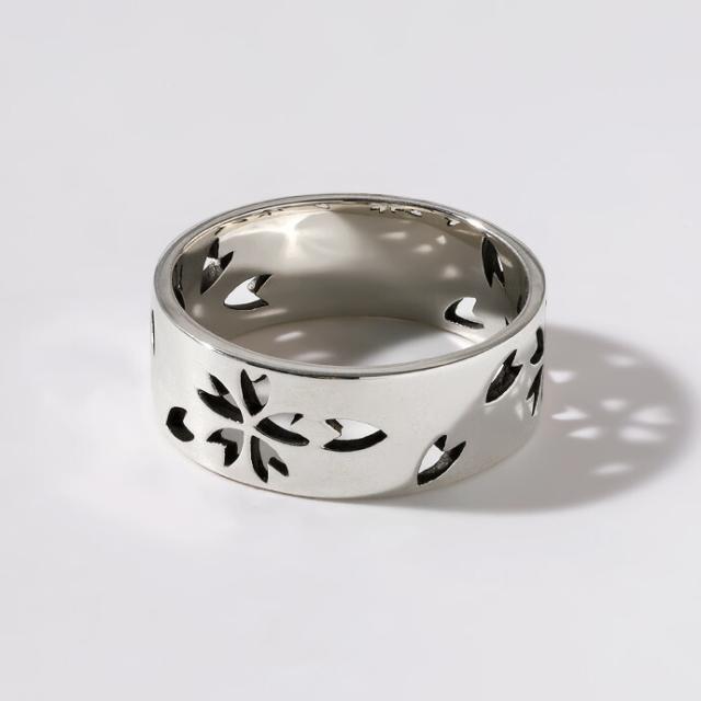 指輪 メンズ リング シルバー925 桜 透かし 和柄 ワイドリング 幅広 平打ち サクラ 花 和風アクセ レディース ペアリング カップル お揃い 20代 30代 40代 50代 シルバーリング さくら 彫り メンズアクセサリー ユニセックス ペアアクセサリー カジュアル きれいめ bar-1465