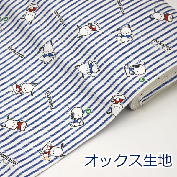 【10cm単位価格】 ポチャッコ ヒッコリー ブルー PCヒッコリー サンリオ POCHACCO オックス 綿100% 生地 布 約110cm幅 835163 入園入学 キャラクター ゆうパケット2m対応( ハンドメイド 手作り バッグ レッスンバッグ 手芸 巾着 日本製 )