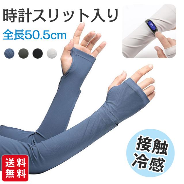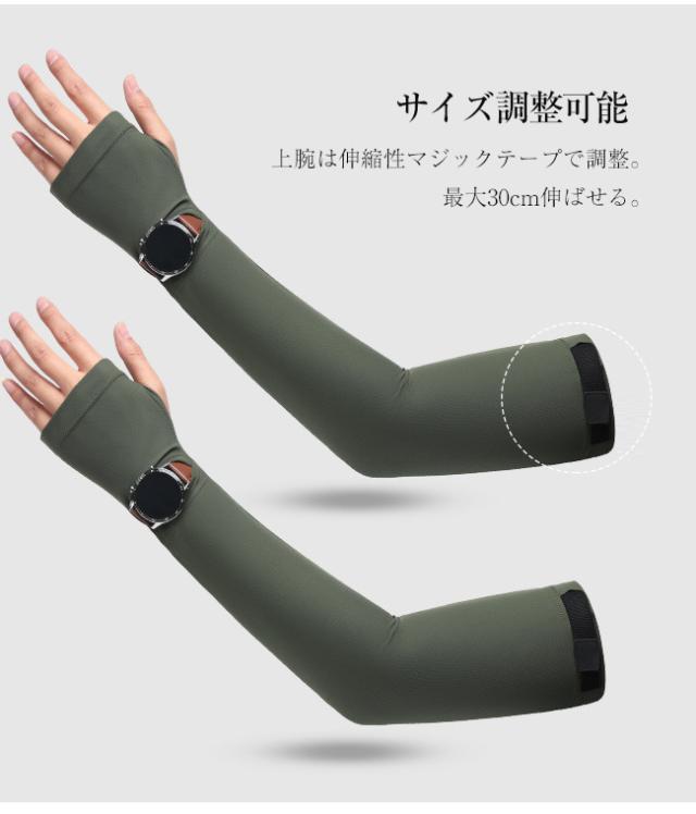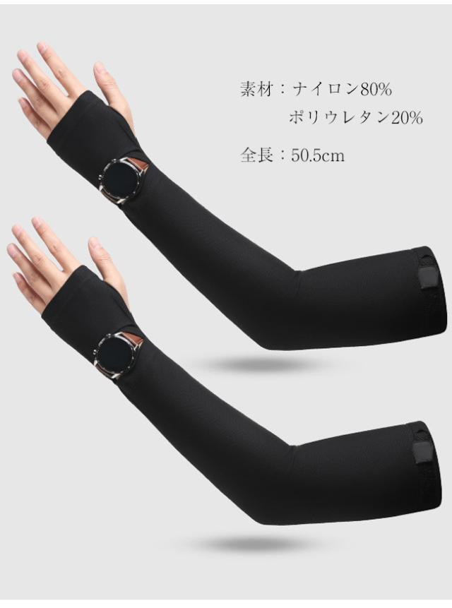 アームカバー レディース メンズ 冷感 ひんやり 吸汗速乾 腕時計対応 時計スリット入り スマホ対応 滑り止め サイズ調整可 日焼け対策 夏用 スポーツ アウトドア 自転車 運転 ブラック